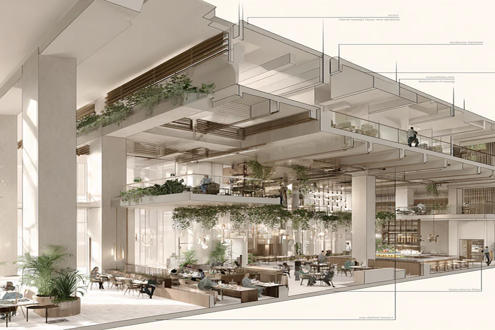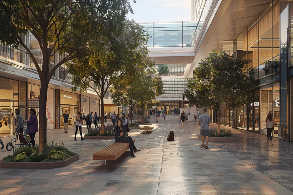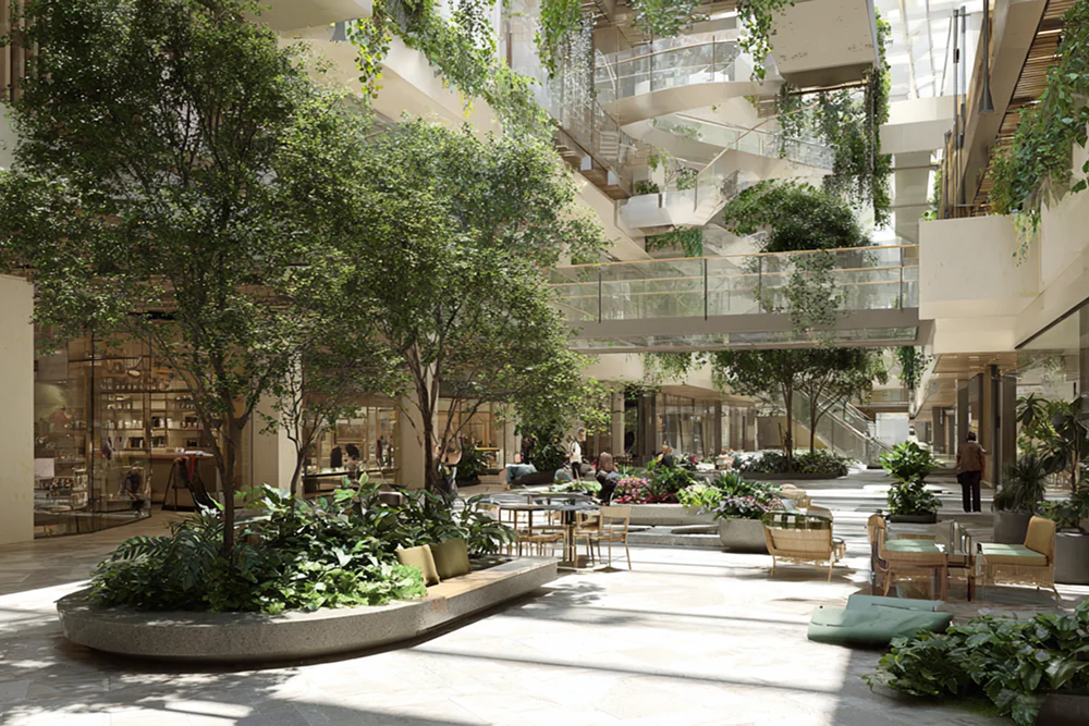 - Redesign open areas with plants, natural materials, and comfortable seating to make the mall feel more welcoming, a place where nearby workers and residents can relax, not just shop. This is not just for the residents, it is also part of the government’s recent strong support for the project of bringing greenery into SF. The building will have an area with seasonal plants, allowing San Francisco residents to experience greenery in the downtown area.